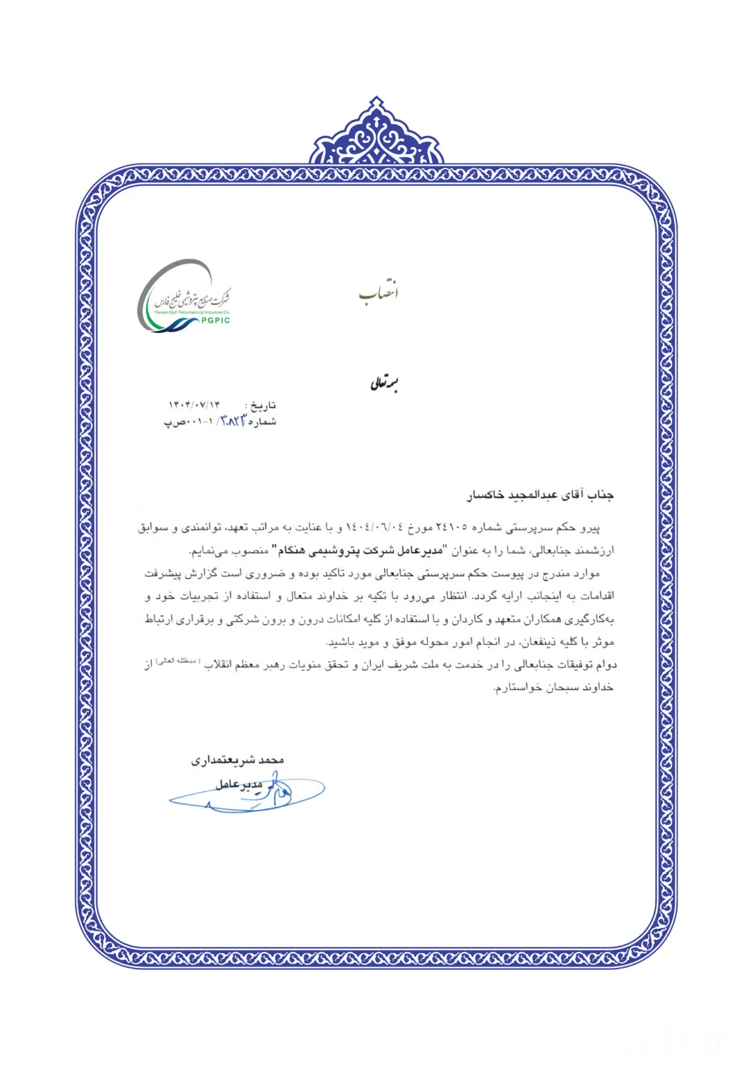 عبدالمجید خاکسار رسماً مدیرعامل پتروشیمی هنگام شد